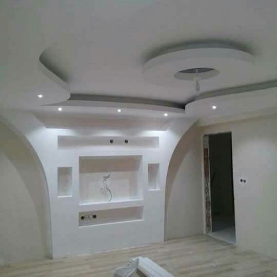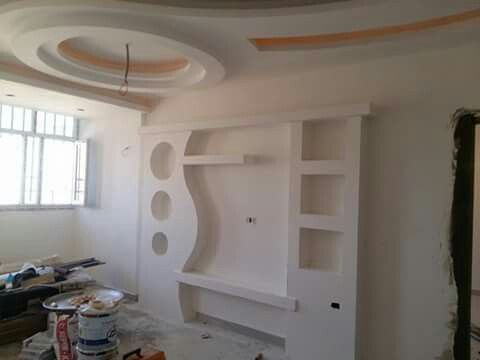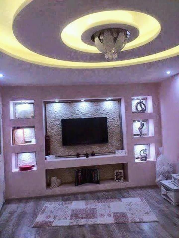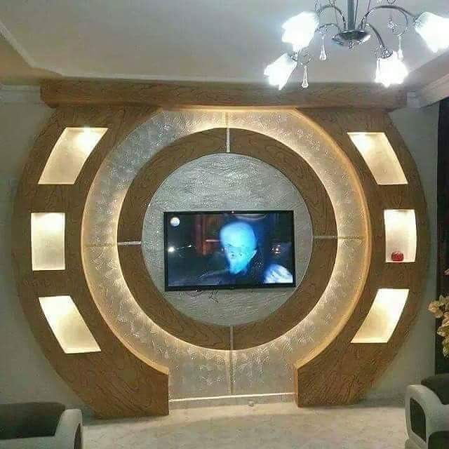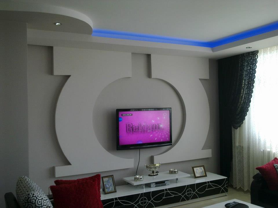 Фигуры из гипсокартона на стене под телевизор: фото