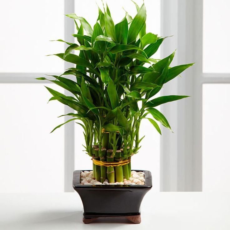 - Бамбук лаки или драцена идеально подходит для выращивания в земле/воде, растение не отличается прихотливостью.