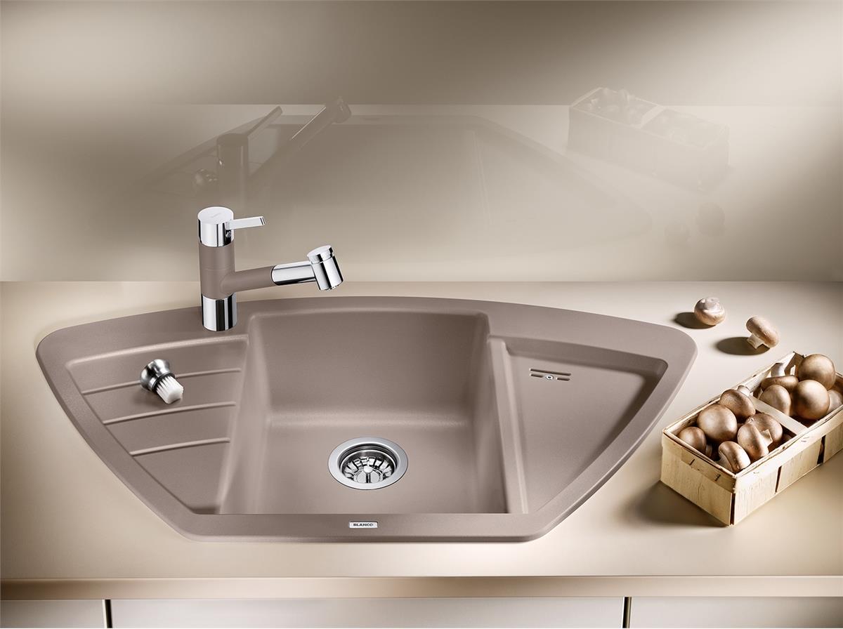 Для угловых кухонь это очень хорошая модель, уступает лишь специально разработанным конструкциям. Однако круглая мойка сложна в монтаже, так как требует больше площади для установки и на деле вместительнее, чем прямоугольный аналог.