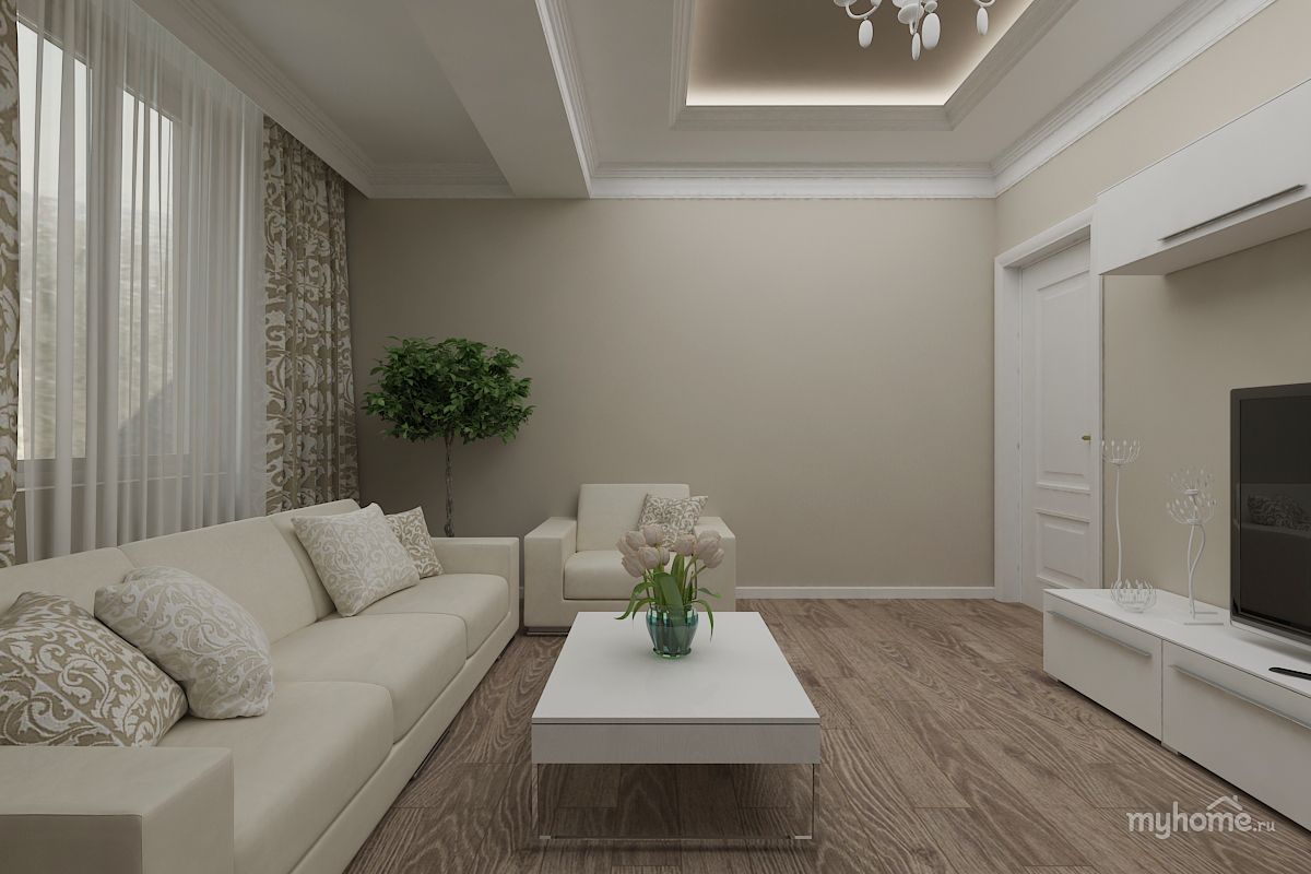 Идеально подойдет плитка цвета сливок, чистого белого либо кремового оттенка. Гостиная в светлых тонах дизайн фото: