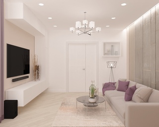 Фиолетовые цвета для гостиной с белой мебельюСовременный дизайн интерьера с изменяющим цвет светомАрхитекторы и дизайнеры интерьеров добавили индивидуальный дизайн мебели в стиле минимализма. Простые формы и прямые линии придают помещению современный и стильный вид.Хрустящий белый декор, цвета красок и предметы домашнего обихода добавляют ясности и драматизма к идеям квартиры. Современный дизайн мебели — журнальный столик, стеллажи и кровати выглядят как большие деревянные ящики, добавляя потрясающие детали в интерьер комнаты и сочетая функциональность и стиль.
