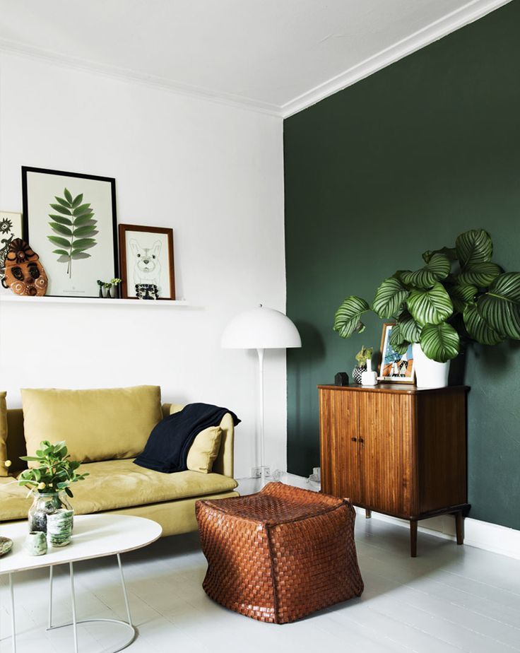 Зеленый – это цвет, которым никого не удивишь. Этот цвет недаром ассоциируется с умиротворением и отдыхом. Темно-зеленые цвета, такие как бутылочный зеленый, подсознательно снимают напряжение и стресс. Все оттенки зеленого, от светлого до темного, подходят как для гостиной, так и для спальни, которая должна быть местом отдыха и умиротворения.
