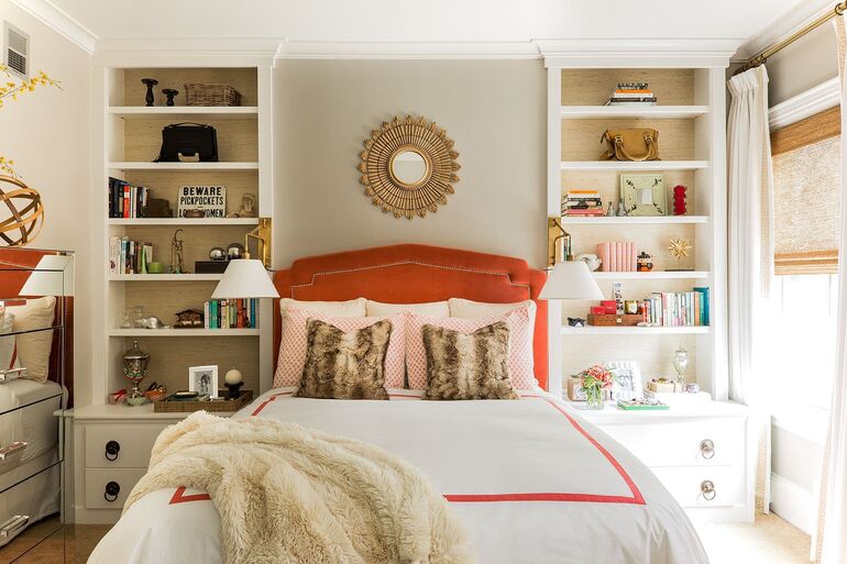 Для небольших спален мне очень нравится использовать настенные светильники, а не настольные лампы для прикроватного освещения», — говорит Ирен Гюнтер, основатель и креативный директор директор Gunter & Co. «Идеи для маленьких комнат неизбежно требуют меньших прикроватных тумбочек, а когда вся поверхность занята настольной лампой, кажется, что это побеждает объект».
