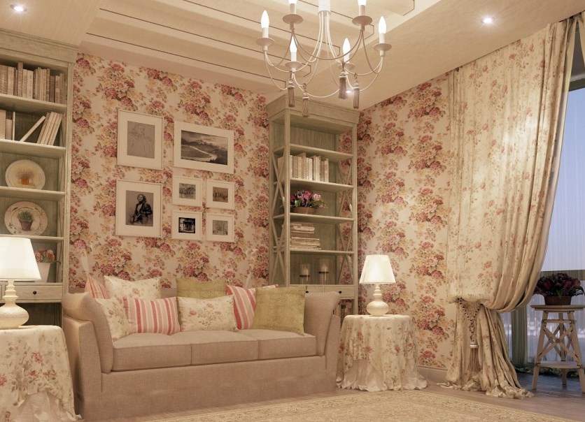 Самый известный и популярный — мелкий цветочек. На скатерти, салфетках, шторах, даже на обоях (но не по всем стенам!) или балдахине кровати! Еще один характерный для стиля принт — туаль-де-жуи. Это рисунки на тканях, изображающие идеалистичные картинки из повседневной жизни: пастушки, овечки, пикник на природе…