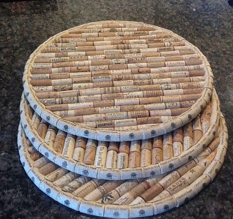 Чтобы сделать такой поднос, можно разрезать пробки и приклеить их к основанию. Хорошо подойдет для чаепитий или вечерней сервировки.