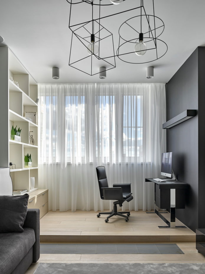 ΠΡΠ»ΠΈ ΠΏΠ΅ΡΠ²ΡΡ ΠΏΡΠΎΠ±Π»Π΅ΠΌΡ ΡΠΏΠΎΡΠΎΠ±Π½Ρ ΡΠ΅ΡΠΈΡΡ ΠΏΠ°ΡΠ° ΠΊΠ½ΠΈΠ³ ΠΈΠ»ΠΈ Ρ ΠΎΡΠΎΡΠΈΡ ΡΡΠ°ΡΠ΅ΠΉ ΠΏΠΎ ΡΠ°ΠΉΠΌ-ΠΌΠ΅Π½Π΅Π΄ΠΆΠΌΠ΅Π½ΡΡ, ΡΠΎ ΠΎΠ±ΠΎΡΡΠ΄ΠΎΠ²Π°Π½ΠΈΠ΅ ΡΠ°Π±ΠΎΡΠ΅Π³ΠΎ ΠΌΠ΅ΡΡΠ° ΡΠ²ΠΎΠΈΠΌΠΈ ΡΡΠΊΠ°ΠΌΠΈ β Π±ΠΎΠ»Π΅Π΅ ΡΠ»ΠΎΠΆΠ½Π°Ρ Π·Π°Π΄Π°ΡΠ°. ΠΡ ΠΏΡΠ΅Π΄Π»Π°Π³Π°Π΅ΠΌ ΡΠΎΠ²ΠΌΠ΅ΡΡΠΈΡΡ Π΄ΠΈΠ·Π°ΠΉΠ½ ΡΠΏΠ°Π»ΡΠ½ΠΈ ΠΈ ΠΊΠ°Π±ΠΈΠ½Π΅ΡΠ° Π² ΠΎΠ΄Π½ΠΎΠΉ ΠΊΠΎΠΌΠ½Π°ΡΠ΅. ΠΠΌΠ΅Π½Π½ΠΎ ΡΠΏΠ°Π»ΡΠ½ΠΎΠ΅ ΠΏΠΎΠΌΠ΅ΡΠ΅Π½ΠΈΠ΅ ΠΏΡΡΡΡΠ΅Ρ Π² ΡΠ°Π±ΠΎΡΠ΅Π΅ Π²ΡΠ΅ΠΌΡ, ΠΏΠΎΡΡΠΎΠΌΡ ΠΊΠ°ΠΊ Π½Π΅Π»ΡΠ·Ρ Π»ΡΡΡΠ΅ ΠΏΠΎΠ΄ΠΎΠΉΠ΄Π΅Ρ Π΄Π»Ρ ΡΠΎΠ·Π΄Π°Π½ΠΈΡ ΠΊΠΎΠΌΡΠΎΡΡΠ½ΠΎΠ³ΠΎ ΡΠ°Π±ΠΎΡΠ΅Π³ΠΎ ΠΏΡΠΎΡΡΡΠ°Π½ΡΡΠ²Π°.