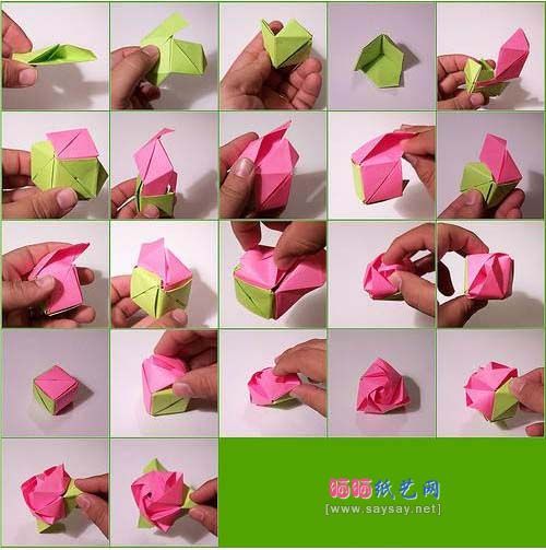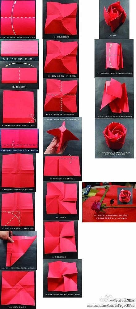 Довольно трудно повторить создание этой розы, следуя только словесной инструкции, поэтому каждый шаг сверяйте с иллюстрациями, или даже посмотрите видео-урок. Здесь присутствует не только особая техника складывания бумаги, а и всевозможные повороты заготовки.