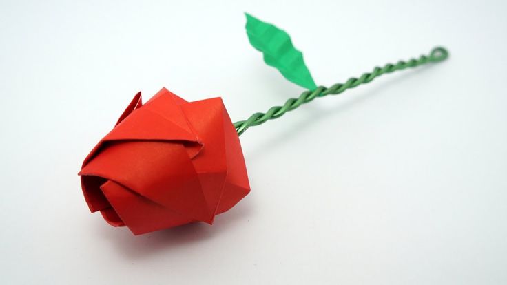 Роза оригами с чашечкой, листом и стеблем
