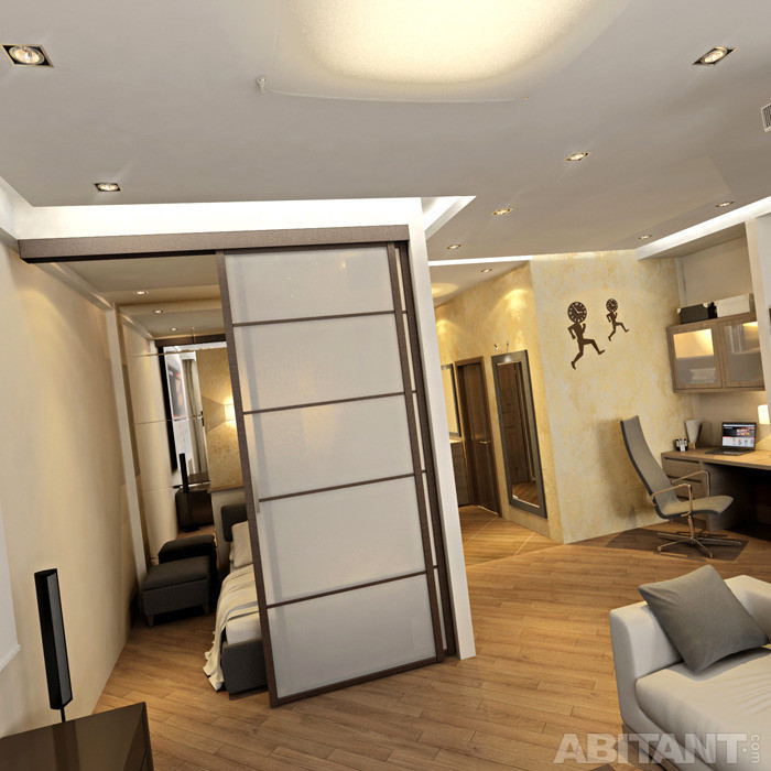 Данный способ как из однокомнатной квартиры сделать двухкомнатную, является декоративным, так как в этом случае вам не удастся добиться полного эффекта создания автономных комнат.