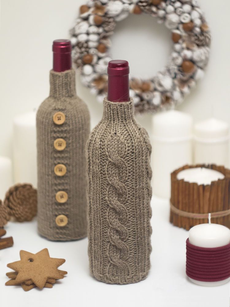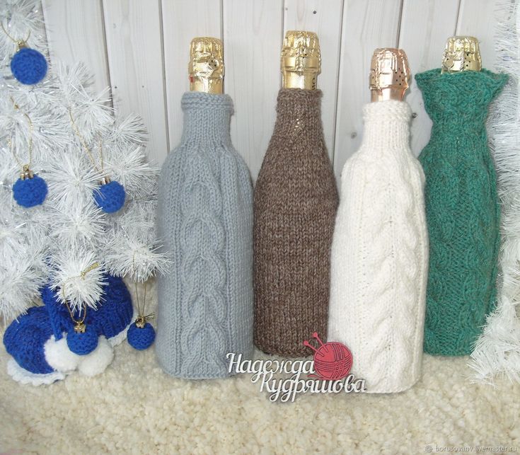 Как обвязать бутылку спицами – вязаный чехол своими руками