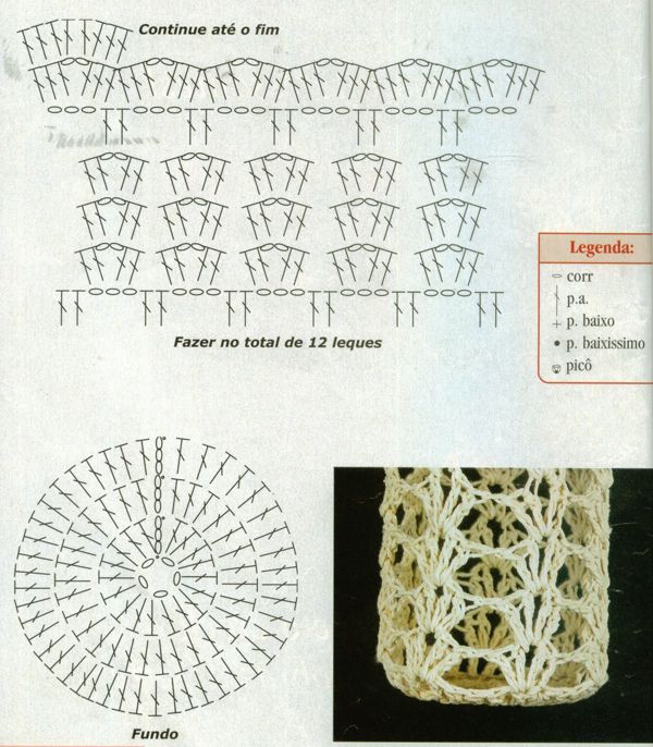 Измерьте бутылочку сантиметром, чтобы правильно рассчитать количество петель. В зависимости от толщины нитки, оно будет разное (здесь получилось примерно 3 петли на 1 см). Представленный рисунок полотна дает возможность не менять их количество, но при этом чехол сядет по «фигуре» бутылки.