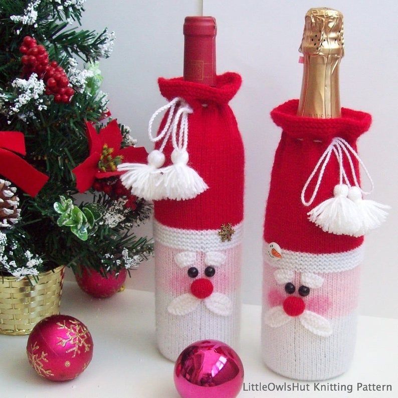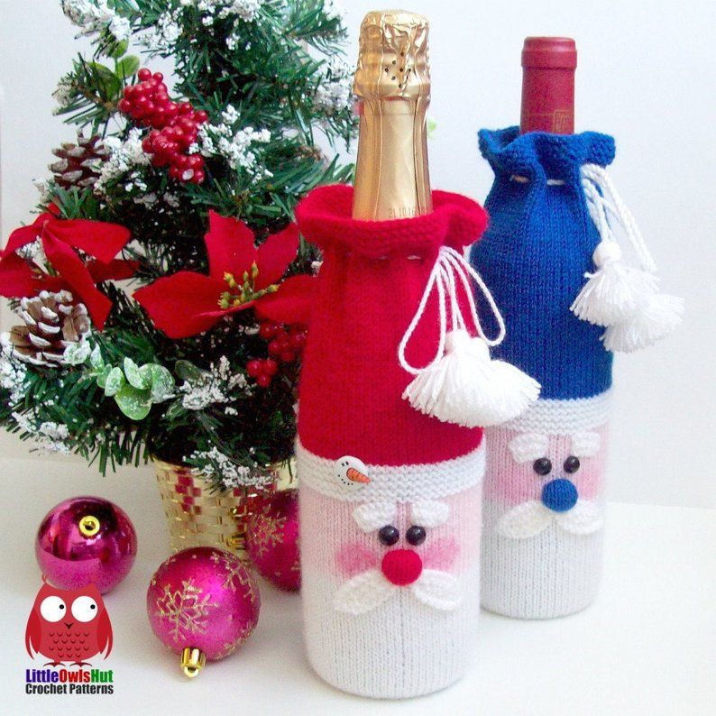 Возможно, вы захотите украсить бутылку вина на Рождество; Вы можете выбрать крошечную одежду или рождественский свитер и крошечную снежную шапку.
