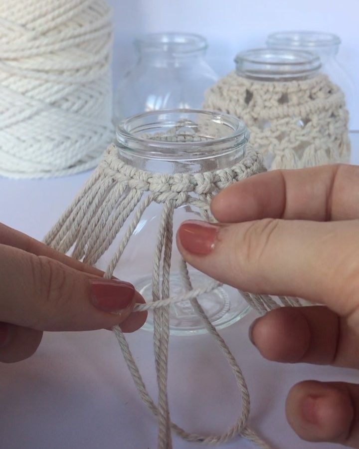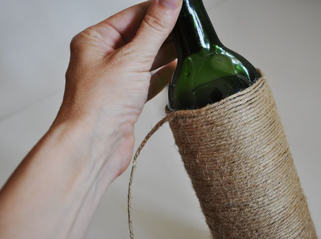 - Полностью обвяжите бутылку ниткой, затем завяжите ее сзади.