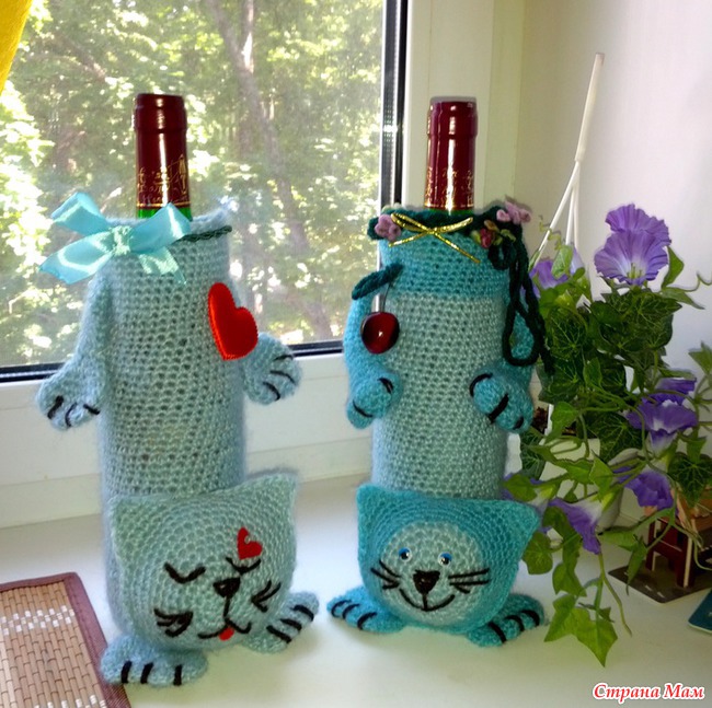 Пошаговый мастер-касс по вязанию чехла для стеклянной бутылки своим руками подготовила Юлия Косич, фото автора.