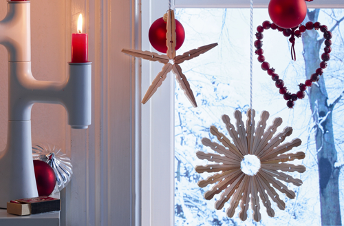 Совет: Лучше отказаться от массивных пышных гирлянд в пользу легких бумажных, светящихся или пластмассовых с блестками звездочек, снежинок, бусин, если вам приходится часто открывать и закрывать ящики комодов и витрин.