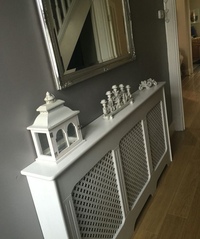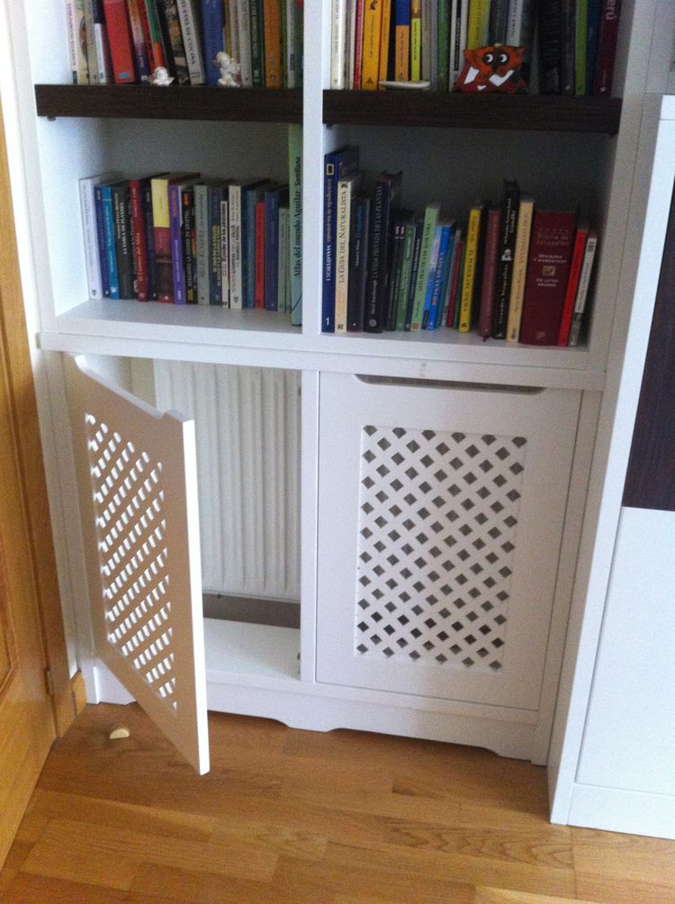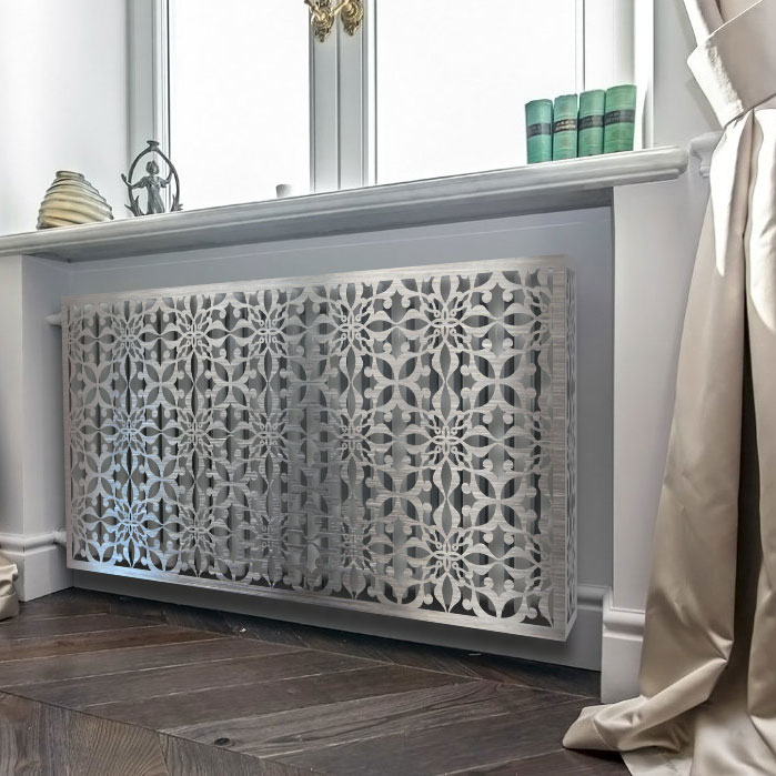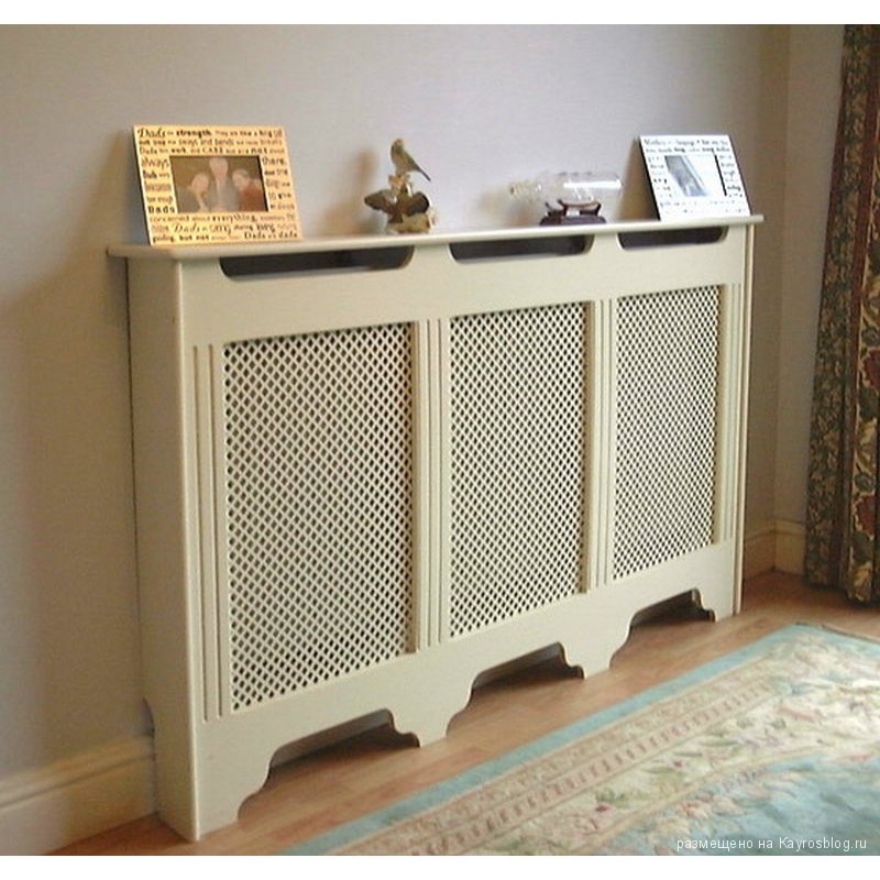 Также в виде короба могут быть исполнены такие экраны для батарей: деревянные, металлические и МДФ. Они могут иметь плоскую форму, которая может быть идеально применена для маскировки батарей, скрытых гипсокартоном или встроенных в ниши. Современные предлагаемые экраны имеют нестандартное оформление для любого дизайна комнаты, на любой вкус и воображение. Альтернативой для выбора выступает резьба, кованные декорации и рисунки, которые подбираются индивидуально для сохранения интерьера и выполняют главную функцию — отлично спрячут радиаторы.