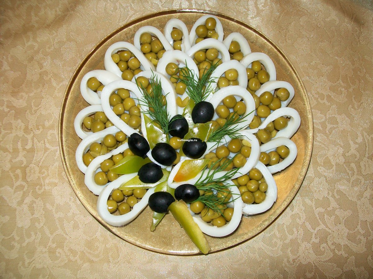 А можно посыпать вокруг кукурузу или маслины. Или уложить мелкие красные маринованные помидорчики…