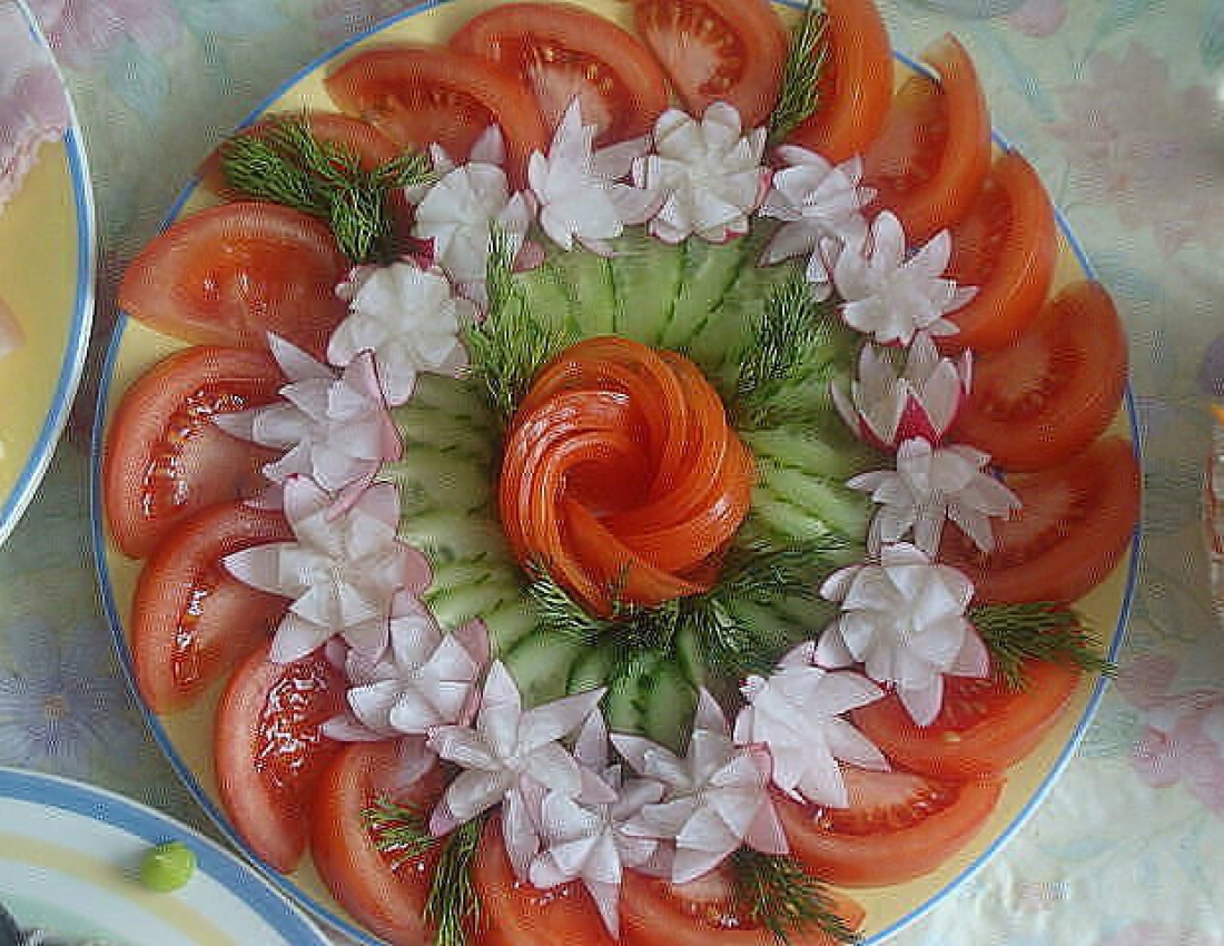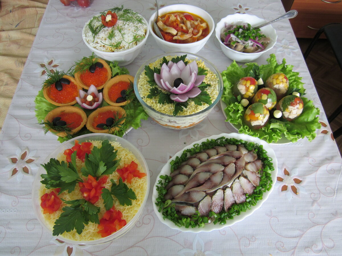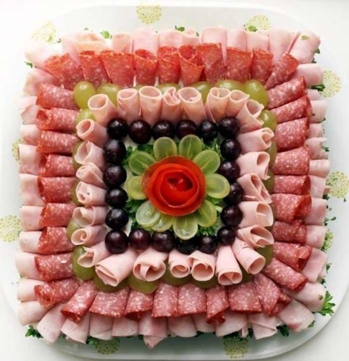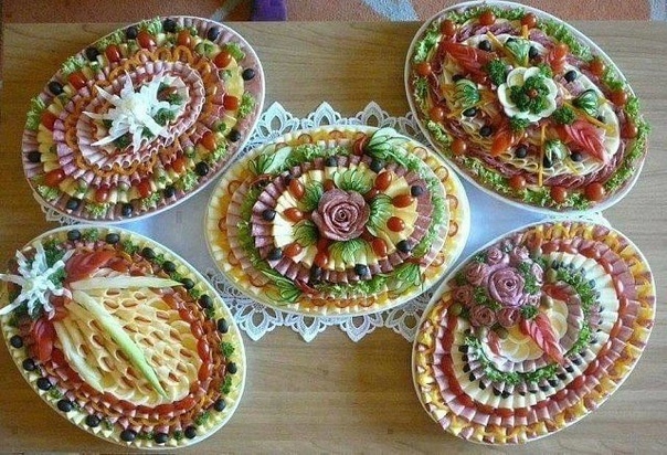 А вот украшению самих праздничных блюд, как оформить нарезки и красиво разложить фрукты и овощи нужно уделить внимание в отдельной статье.