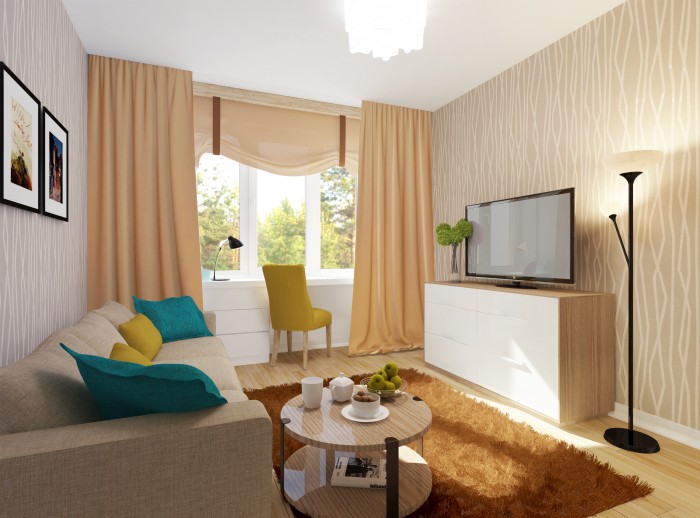 Категорически не рекомендуется в зале однокомнатной квартиры комбинировать обои, обои с широким орнаментом или рисунком, клеить стеклообои.