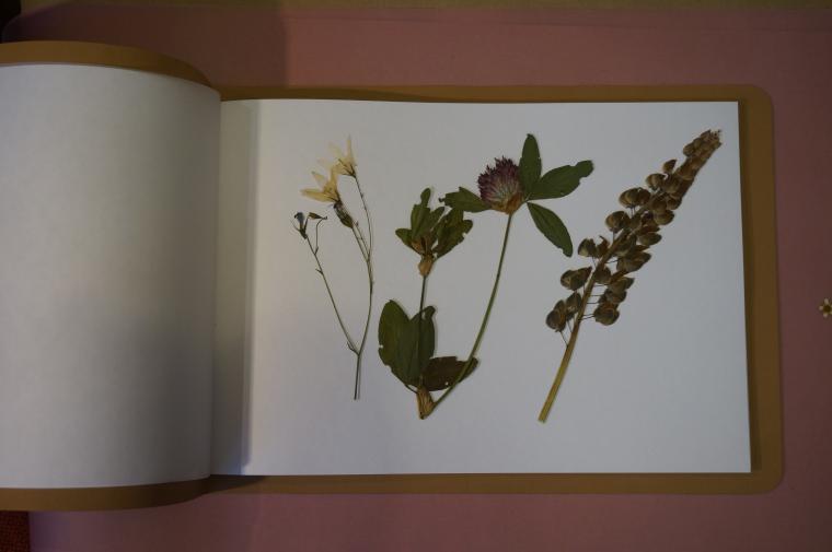 Существует еще один вид гербария – раскладушка. Листы бумаги скрепляются между собой в ряд, на них выкладываются желаемые композиции или просто отдельные растения. В сложенном виде то будет обычный блокнот или книжечка, а в разложенном – длинная лента с мини-картинками растений.