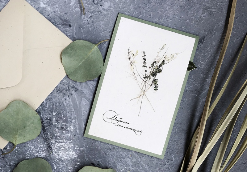 Очень красиво такая миниатюрная композиция смотрится на обложке открытки, сделанной своими руками, или на любимом ежедневнике. Закрепить гербарий на поверхности лучше всего с помощью самоклеющейся пленки, которую можно купить практически в любом магазине канцтоваров.
