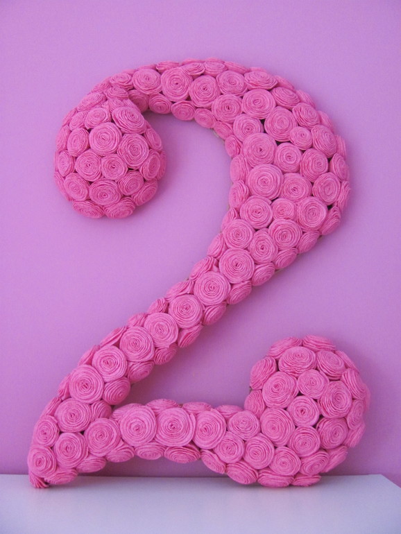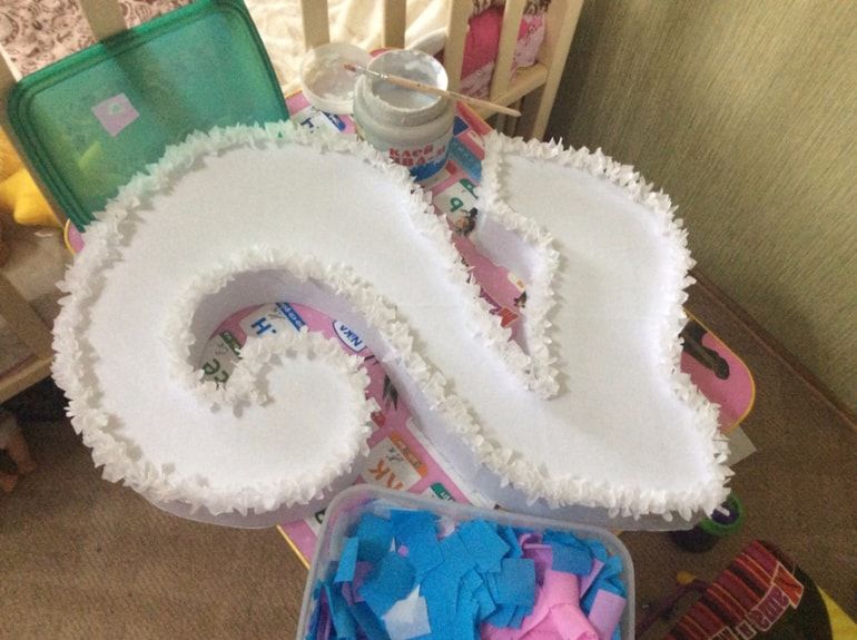 При этом бахрома должна быть направлена на низ. После того как бумага будет приклеена на всю цифру, обрежьте лишнюю часть по краю фигуры.