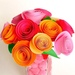Для создания букета возьмем цветную бумагу желтого и оранжевого цвета. Таким образом, получим колоритный букет ярких и сочных тонов, который непременно порадует близких.
