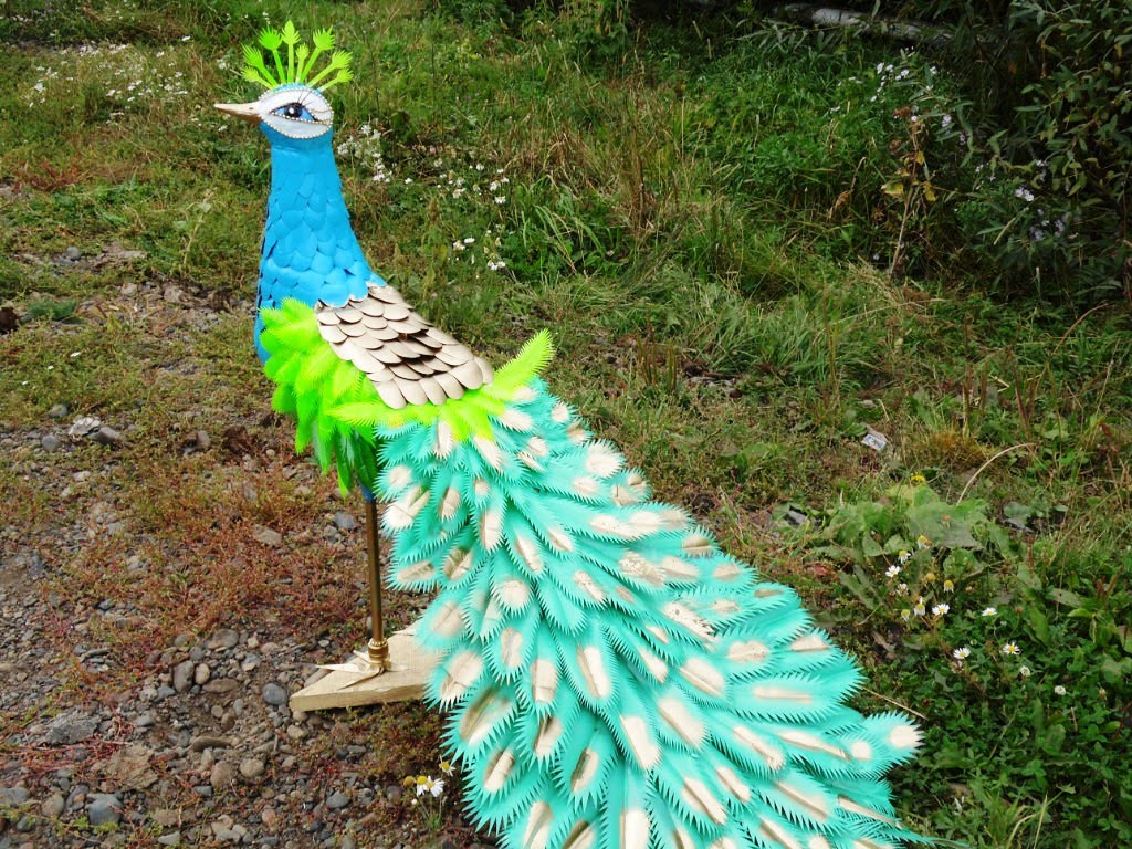 Часто можно увидеть, как дома украшают статуэтками, садовыми гномами или фонтаном. Если у вас есть пластмассовая бутылка, то она может стать замечательным украшением для сада. Многие мастера умудряются сделать удивительные композиции, такие как на этом фото.
