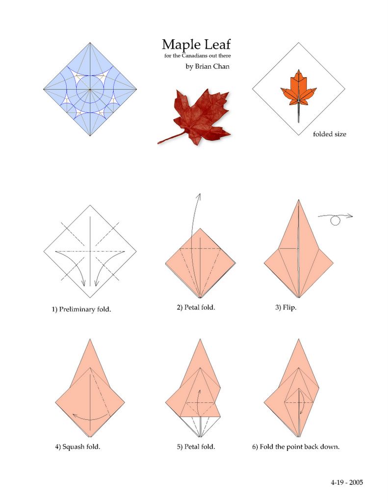 Чтобы сделать кленовый лист оригами по схеме, необходимо следовать инструкции: