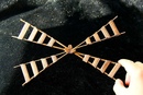 - На концы лопастей закрепите короткие рейки и прикрутите круги в центре. После чего просверлите в середине дыры и установите шпильки. Тоже нужно сделать с торцом.