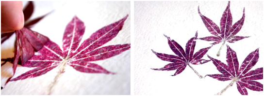 Этот вид подделки был взят из одного зарубежного сайта. Чтобы на бумаге остался красящий пигмент листочков, надо его положить между салфеткой и специальной акварельной бумагой, затем постучать и рисунок готов.