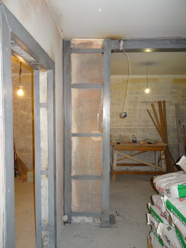 Если требуется прорезать дверной проем, сначала проведите расчеты и выполнить работу по проектированию, а также не забыть про установку подпорных стоек для увеличения прочности перекрытий.