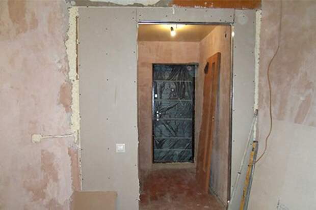 - Дверной проём в перегородке из ГК в квартирах, частных домах, небольших объемах.