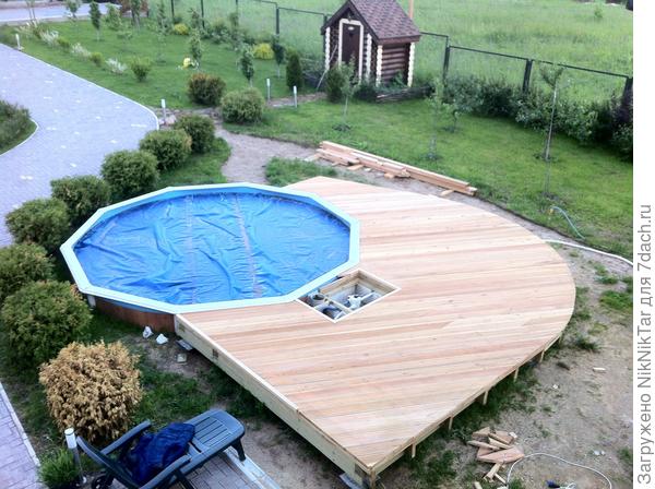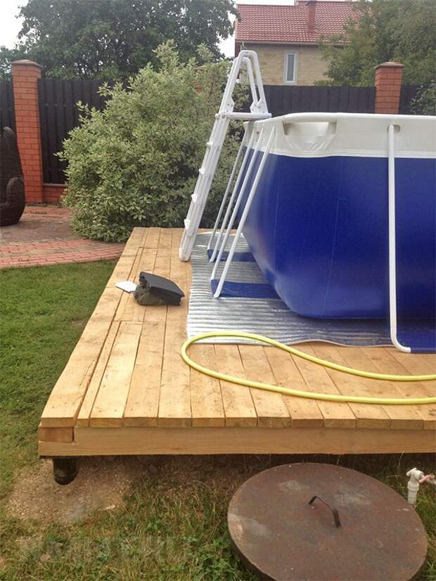 Сделать подиум для каркасного бассейна своими руками не сложнее, чем пристроить террасу или открытую веранду к дому.