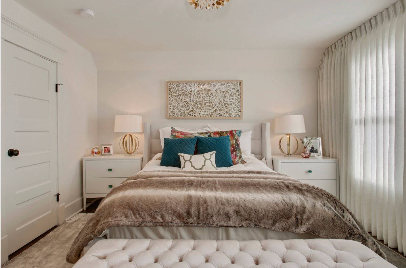 От ламп с мягким освещением на прикроватной тумбочке до очень длинных тканевых штор — ваши аксессуары должны соответствовать духу комнаты.Даже картины на стенах должны быть в сдержанном и расслабляющем стиле.