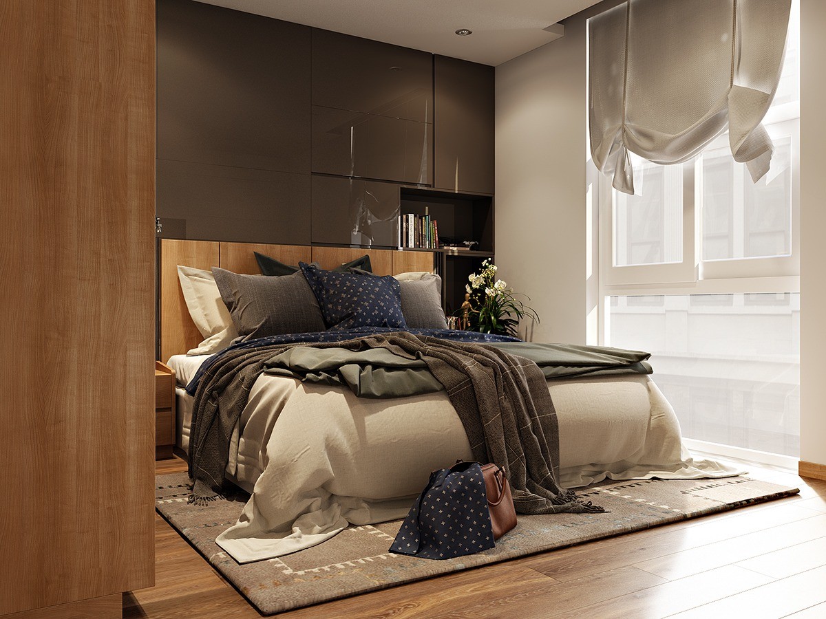 - Для маленьких комнат используйте темные оттенки, так спальня будет казаться больше.