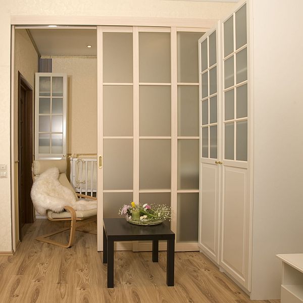 Если дверного проема нет, то ставится стенка с полотном на роликах. Таким образом вы отделите одну часть помещения от другой.