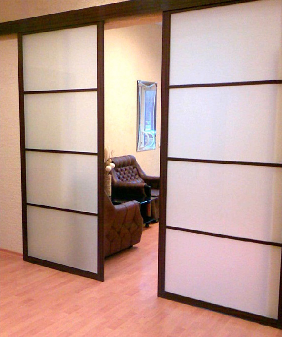 Более легкий вариант полотен для раздвижной перегородки обычно устанавливают при проемах шириной более 2-х метров.