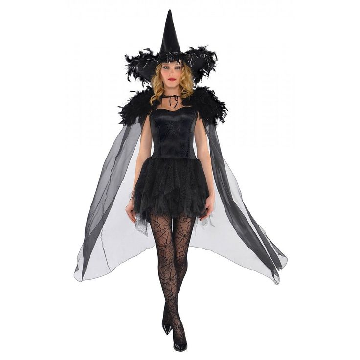 Готическая колдунья. Обворожительная красивая девушка, которая никогда не улыбается. Её образ состоит исключительно в чёрной цветовой гамме. Платье стоит выбрать длинного фасона со шлейфом. Из аксессуаров подойдёт браслет, ожерелье и медальон в виде паука, черепа или креста. Образ можно дополнить декоративной паутиной: её легко изготовить из шерстяных ниток серого цвета.
