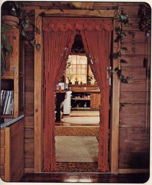 Стиль кантри — естественные цвета, простота, деревенский уют. В этом случае сделанным своими руками шторкам для дверей подойдут керамика, дерево, камни, вязаные цветы и полосы.