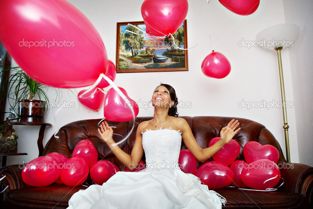 Есть несколько популярных стилей, в которых можно украсить комнату невесты — они подойдут для любой свадьбы в европейском стиле. Первый стиль мы условно назовем «Прощай, детство». Девушка становится взрослой не когда ей исполняется 18 лет, а когда она становится хозяйкой собственного дома и покидает родительский. Поэтому комната невесты по контрасту оформляется в преувеличенно девичьем стиле. Плюшевые игрушки, милые сердечки, воздушные шарики, ленточки и бантики и другие мелочи как на фото могут украсить комнату невесты.