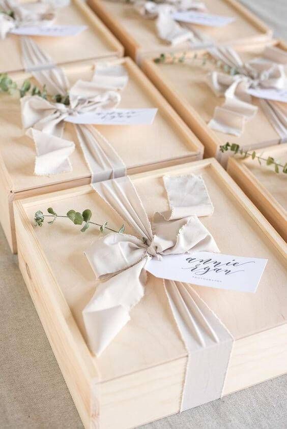 Как упоминалось выше, небольшая модификация популярного метода — отличный способ персонализировать упаковку вашего свадебного подарка. В то время как атласные и шелковые ленты больше используются в декоративно-прикладном искусстве, вместо них вы можете рассмотреть возможность использования бархатных лент. Бархатный материал источает утонченность и элегантность, а использование его с правильной оберточной бумагой может привести к великолепному свадебному подарку.