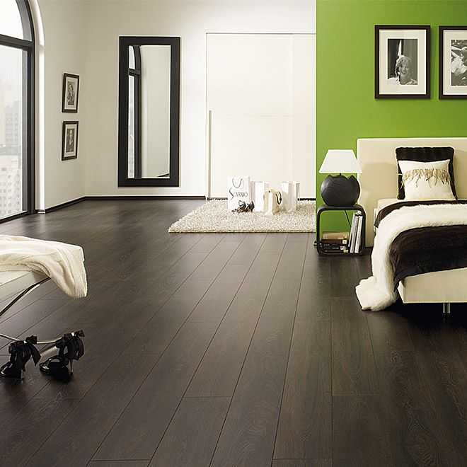 - Темный пол из натуральных пород дерева (паркет, доска) или из ламината в комнате с белыми стенами и потолком зрительно сделает комнаты больше.