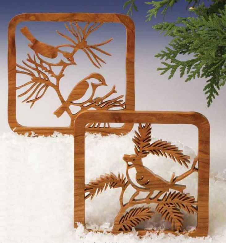 Фрагменты композиции выпиливаются лобзиком, выжиганием можно подрисовать мелкие детали, и склеиваются между собой эпоксидкой, «Моментом» или столярным клеем, покрываются лаком. Комбинирование материала разных оттенков усиливает эффект объемности.
