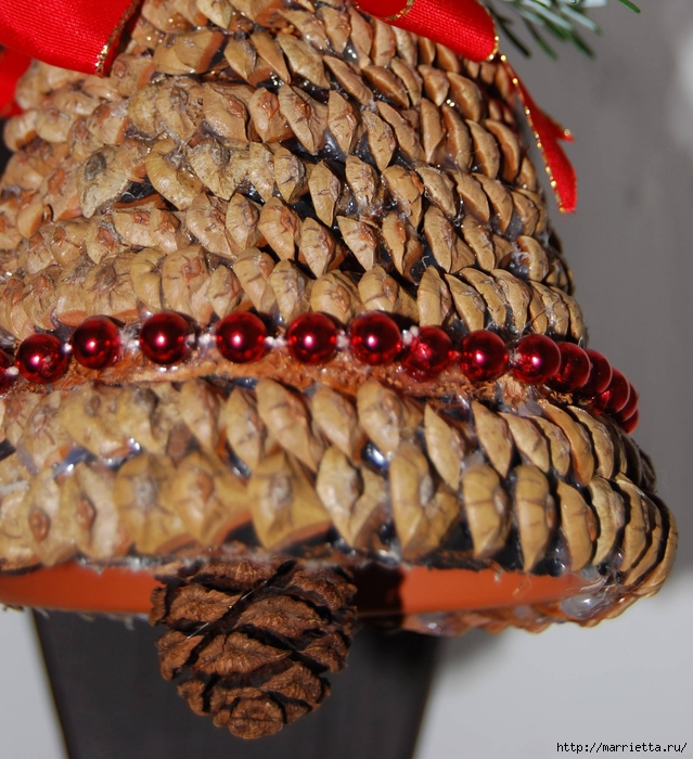 Далее связываем шишки по той же технологии, придавая изделию нужную форму.