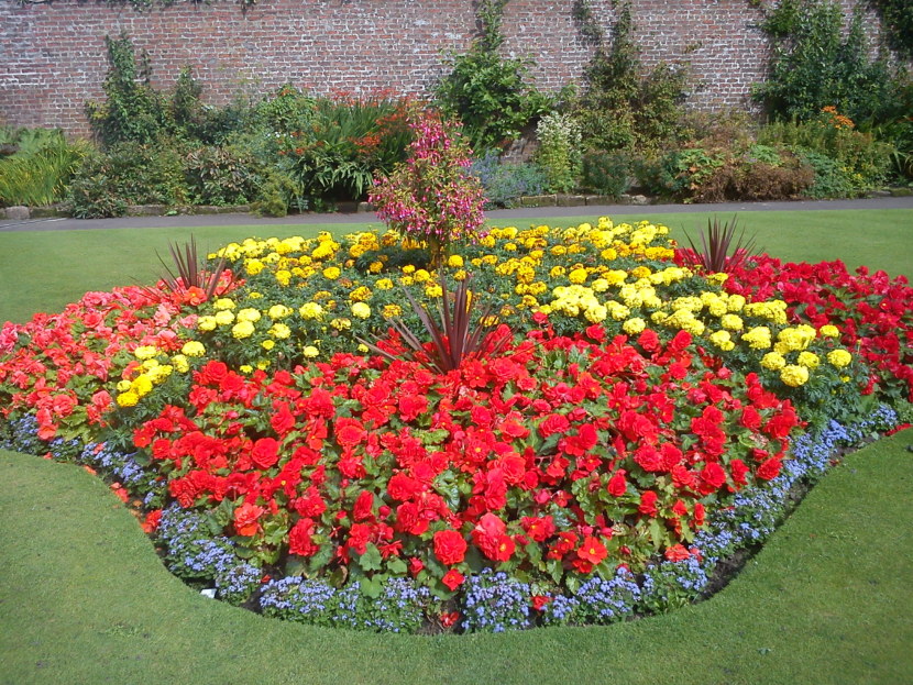 Затем идут растения, вырастающие до средних размеров, и возле самого бордюра клумбы помещают низкорослые цветы. Такое построение обеспечит все ярусы светом солнца и – не менее важно – людским вниманием. Так называемые солисты клумбы, цветы средней высоты, обычно бывают многолетниками и могут похвастать ярким приятным глазу цветением, а высокая центральная и стелющаяся окраинная зелень служит обрамлением.