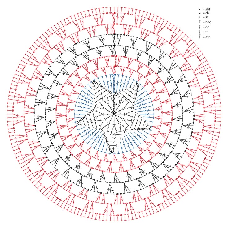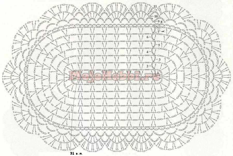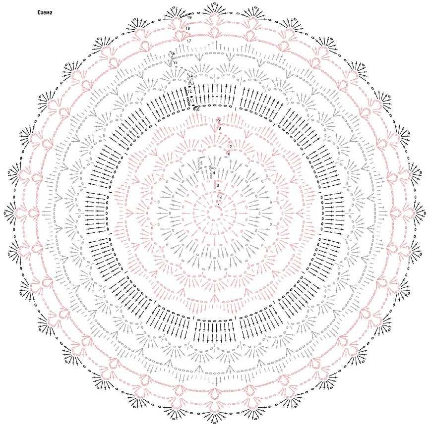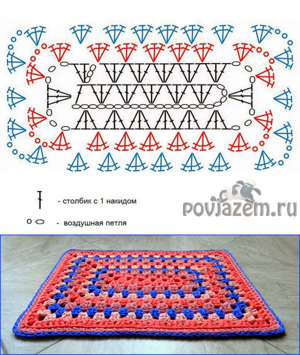 Чертеж перед вами, есть и видео мастер класс, а также другие схемы и идеи вязания красивых оригинальных ковриков на пол в новой статье.