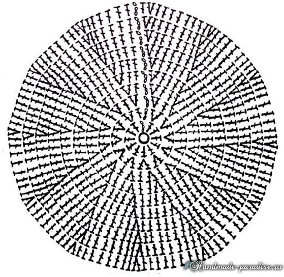 Помним, чтобы круг был ровным, прибавки в рядах нужно делать не в одних и тех же местах, а со смещением в шахматном порядке, иначе получится многоугольник.