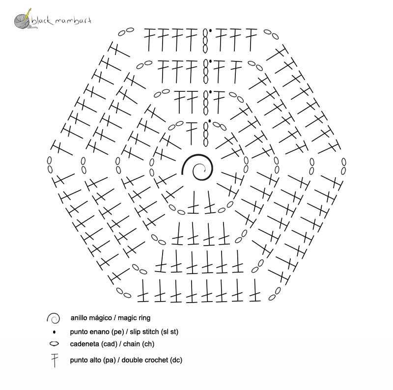 2-й и последующие ряды так и вяжем по кругу согласно схеме.
