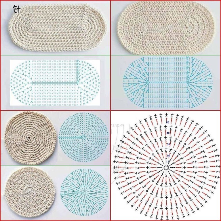 Не обязательно напольные изделия должны быть круглыми, из половинки можно сделать придверный коврик, и схемы имеются.